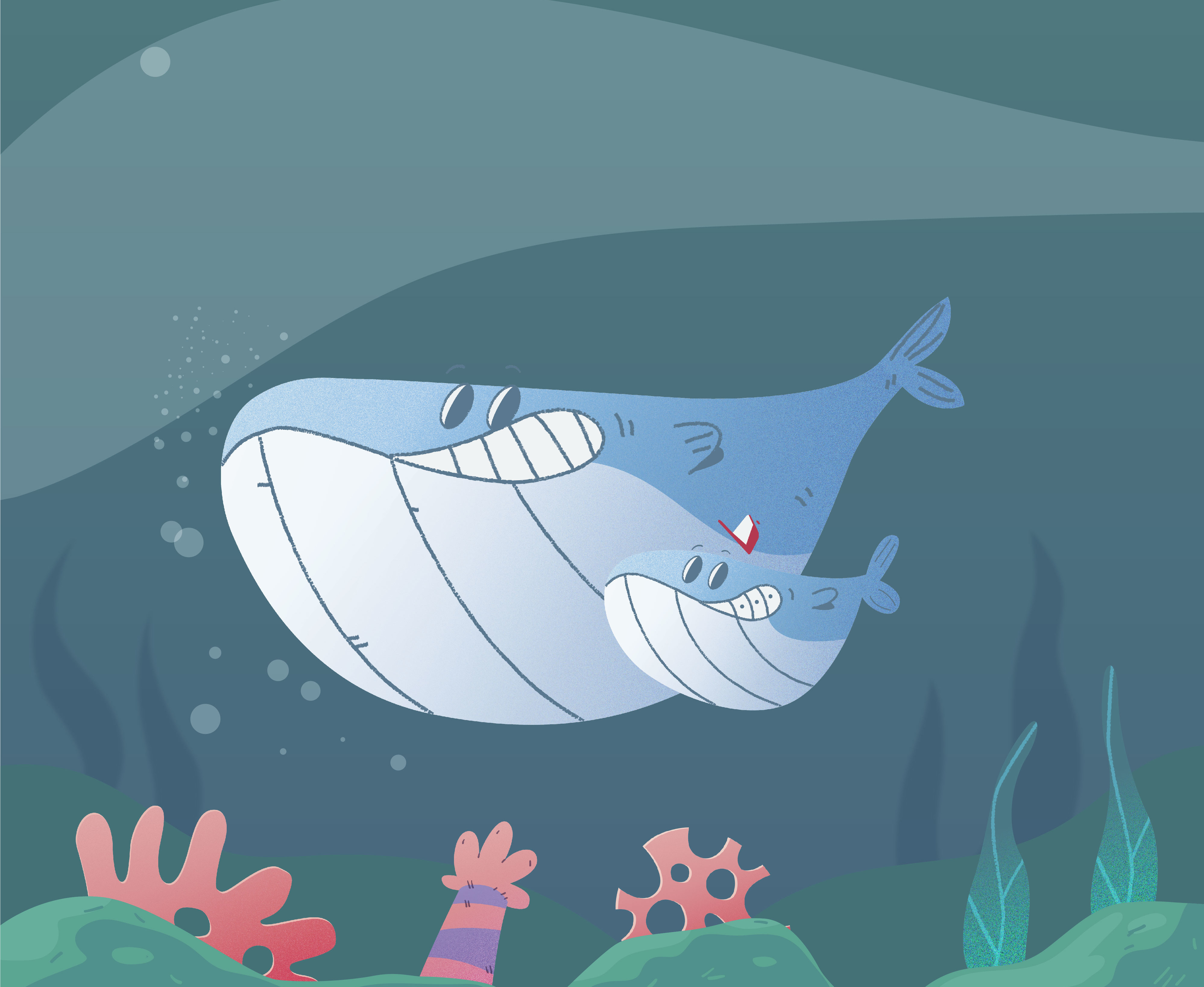 Our character design was done with simple forms, with flat, bright eye-catching colors and hints of paper-like texture.